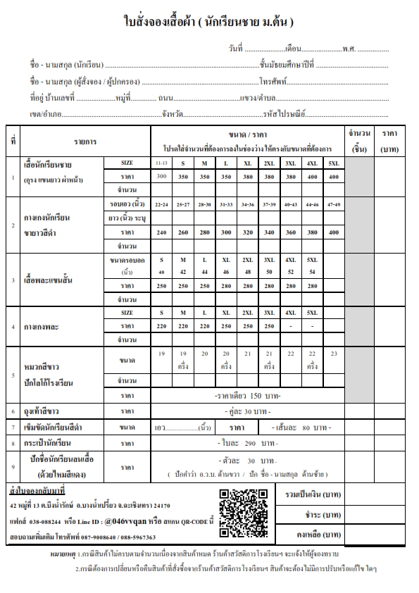 | ใบสั่งจองชุดนักเรียนชาย ม.ต้น | ดาวน์โหลด | 0.31 MB | 238 | 31 มี.ค. 63 |