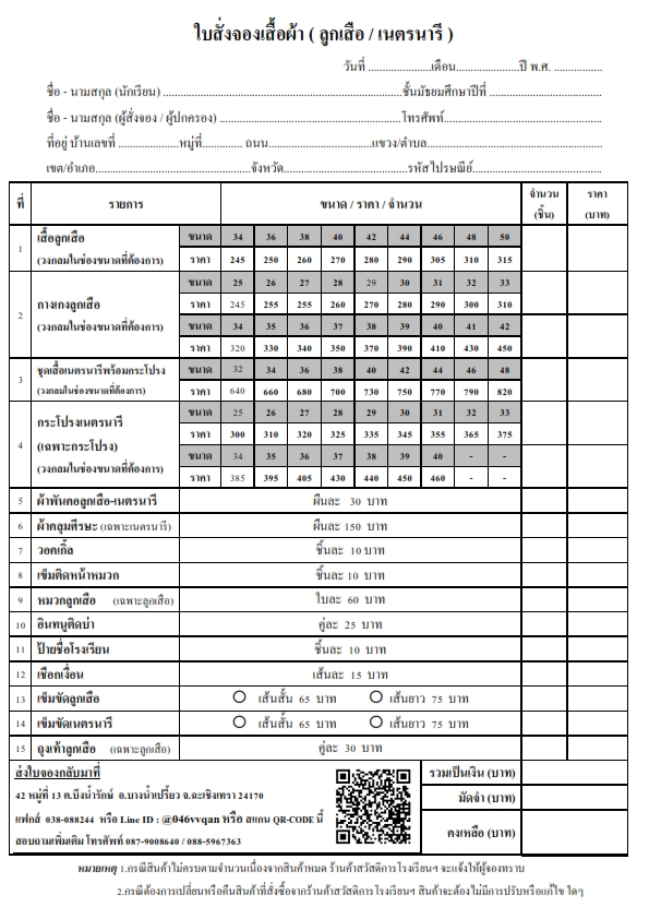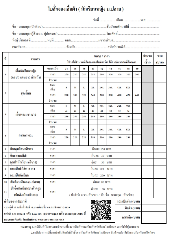 | ใบสั่งจองชุดนักเรียนหญิง ม.ปลาย | ดาวน์โหลด | 0.30 MB | 221 | 31 มี.ค. 63 |